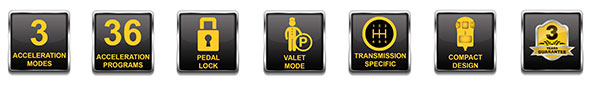 Now with 3 acceleration modes (Factory, Sport and Race) and 36 acceleration programs in total (18 manual and 18 automatic) to ensure flexibility and overall control over your vehicle's acceleration.